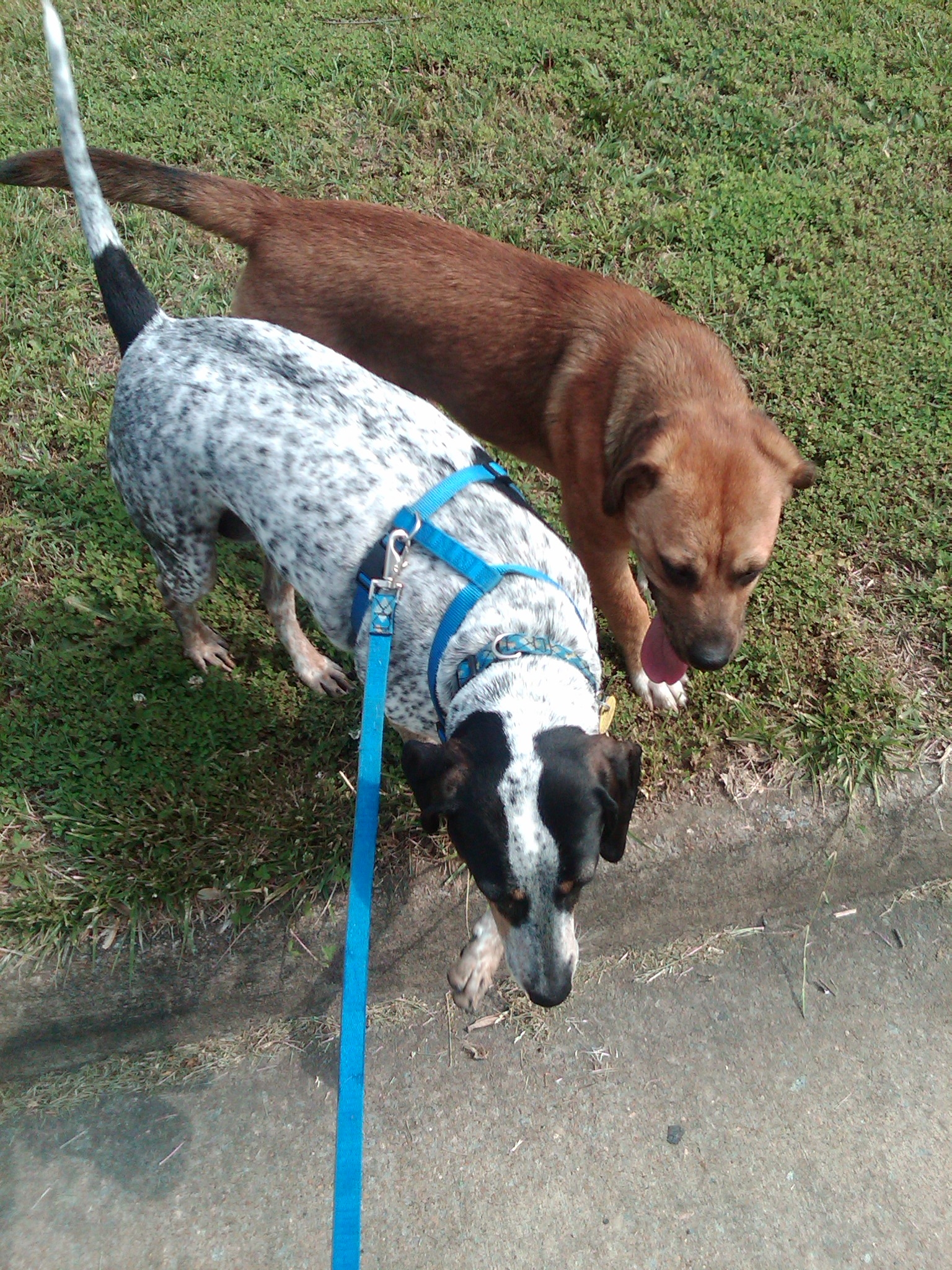 Me and Charlie would have a good ole time. I don’t think Mama T had as much fun cos she kept trippin over us as we were frolickin and tryna hump each other while walking. But she did get some muscles in her arm from pullin us apart.