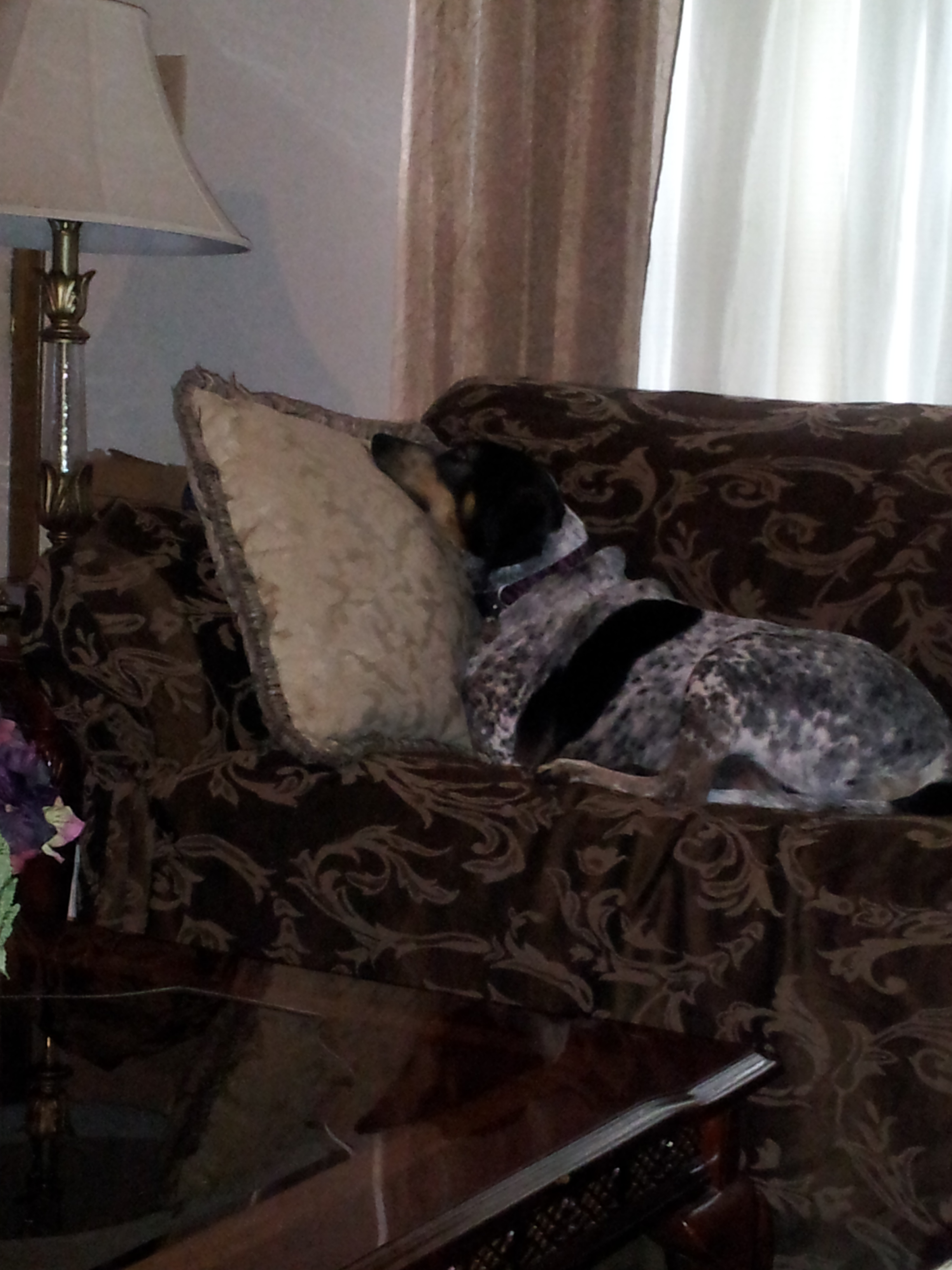 An she need ta work so I can go back ta daycare. I need ta get out, meet some other canines and find a man. All I be doin is sleeping and being woke up by Mama T an dat damn camera phone. She act like she ain’t nevah seen a cute dog like me sleepin befo.